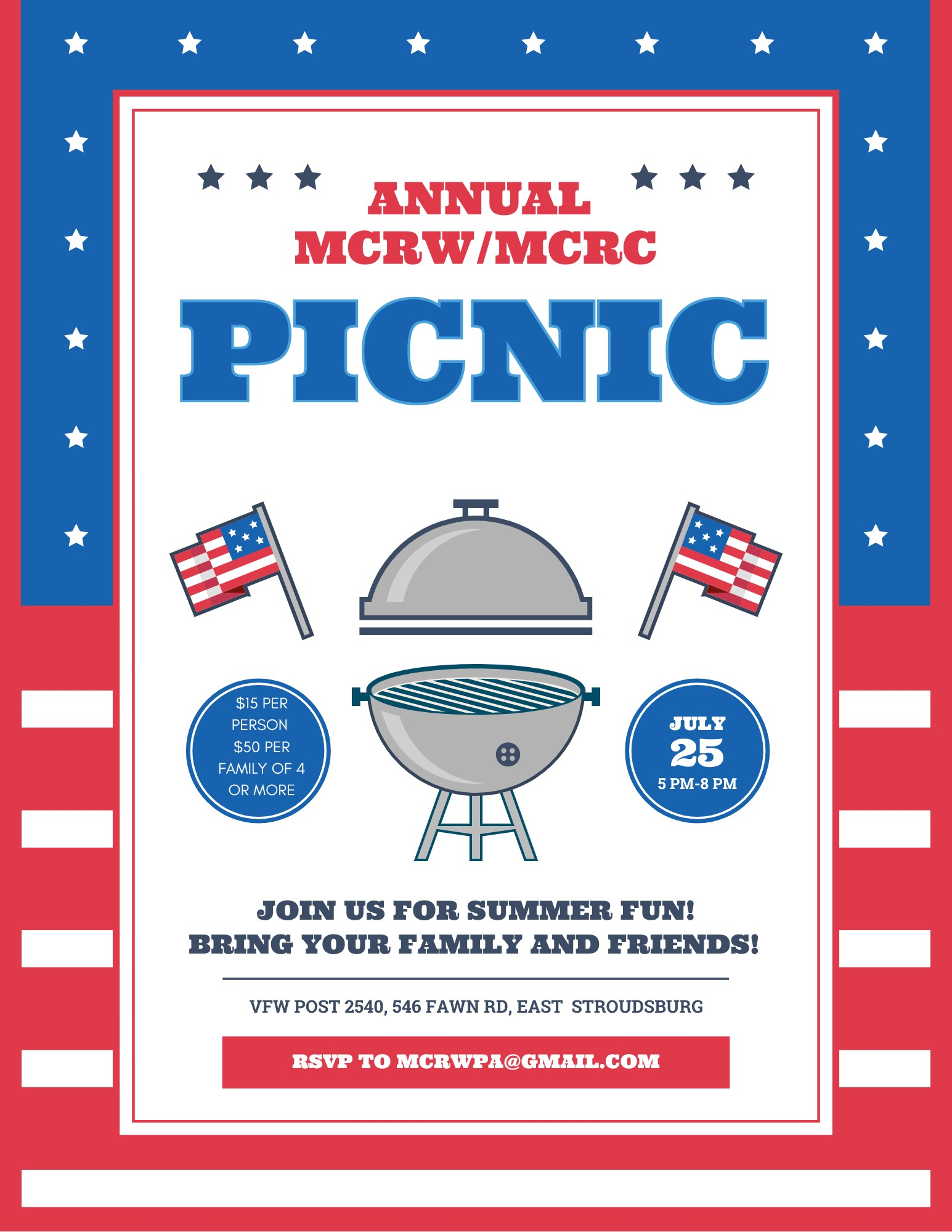 [INFO POSTER HERE] $15 Per Person/$50 Per Family (4 or more). Please RSVP: mcrwpa@gmail.com no later than July 5, 2025. |
