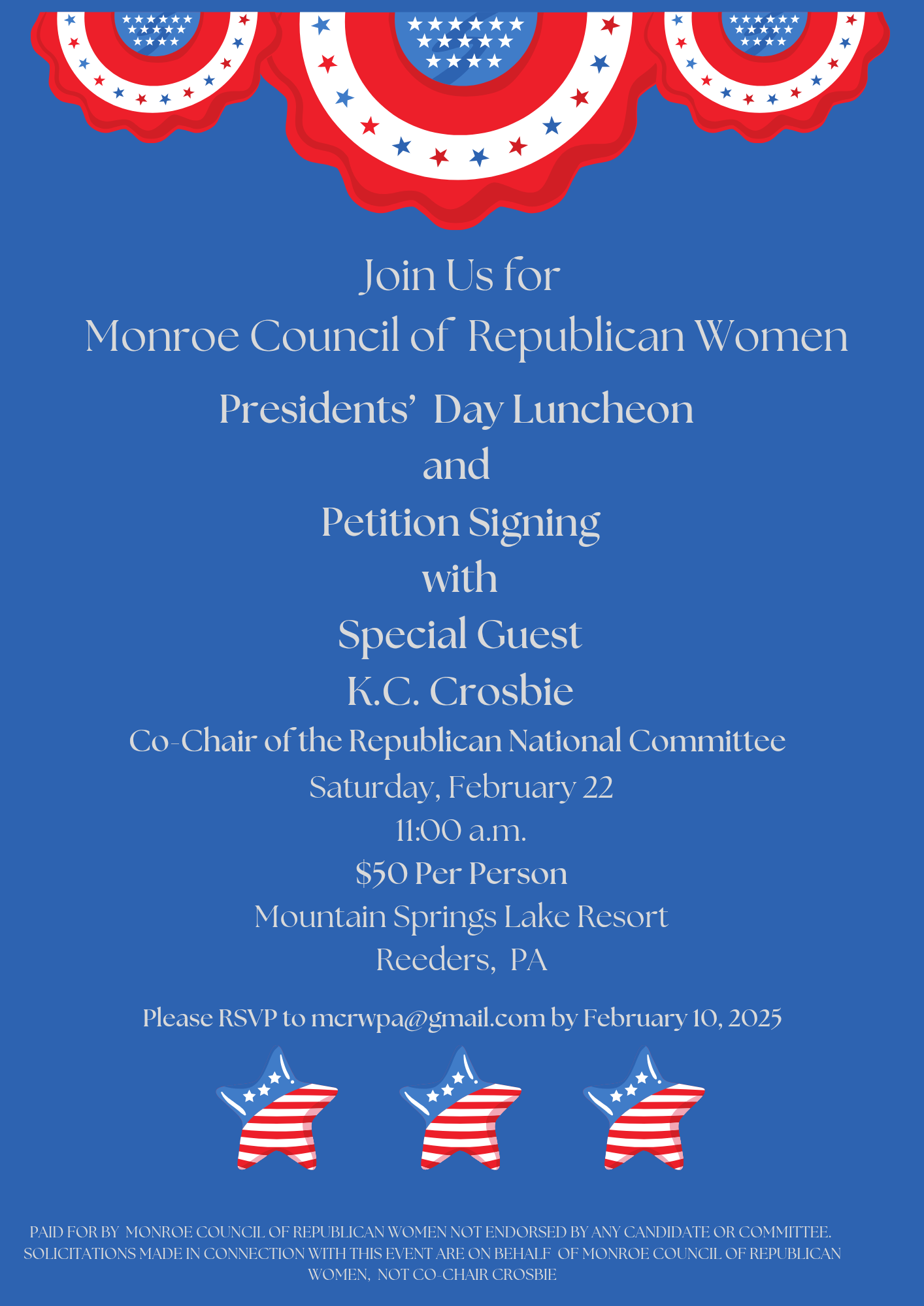 | February 22 - Saturday | MCRW - annual President's Day Luncheon