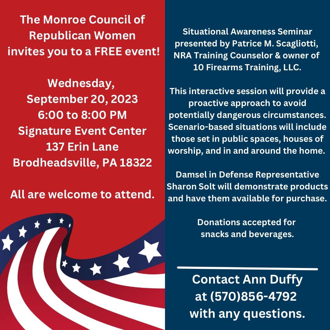 5:30pm Cocktail Hour, 6:30pm Dinner. RSVP by 9/29/2023 to MonroePAGOP@gmail.com . |